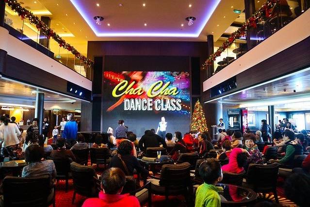 返程的最后一天都在海上,上午在房间内看了一场电影,套房内的点播电影是免费的,基本上都是新片,不过大部分是英文的,中文的比较少。看完电影我们来到中庭,看到有恰恰舞课程,好多小朋友都去学习了。