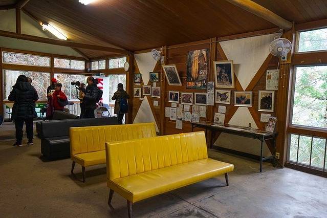 穿越中,我们看到了过来勘探的队伍,后来才知道是私人过来寻宝的,这一点够酷的。要是在大陆,应该会算是违规的吧。走了半小时左右就出洞穴了,外面有休息室,有自动贩卖机,可以歇息一会儿再下山。