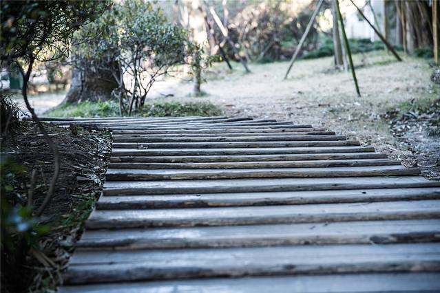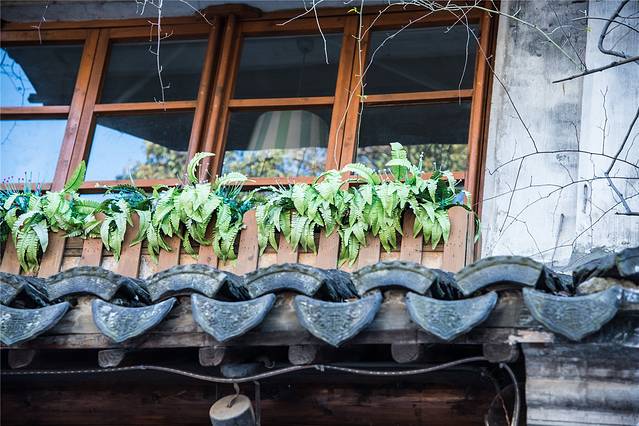 一处普通的走廊,以紫藤花和窗格修饰之后立刻大气了起来,只可惜没有在花开的季节拜访它。