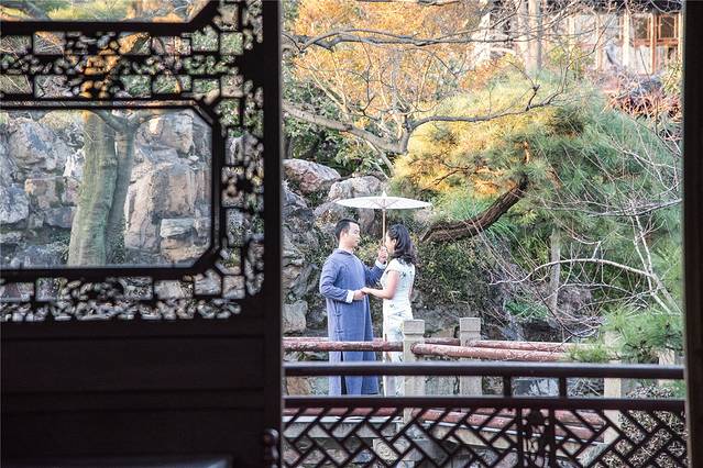 遇到了一对拍婚纱照的新人,希望他们能在这个爱情圣地得到祝福。