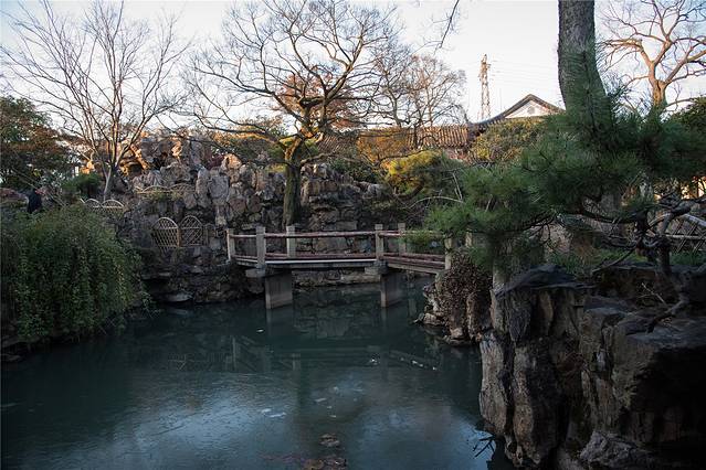遇上了苏州最冷的时候,池水全都结成了冰。