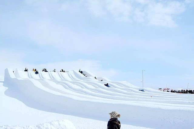 Tsudome会场与以冰雕作品为主的大通会场相对,这里是可以与雪近距离亲密接触的会场,有许多带着儿童前来的家庭及游客,除了有用雪制作的滑梯及迷宫,这里还能制作雪人及体验雪上划艇。
