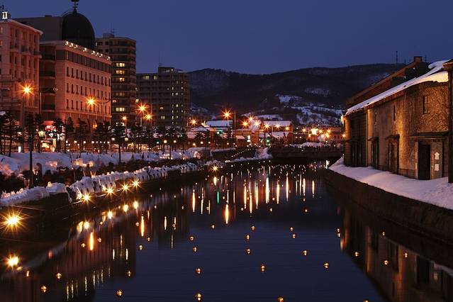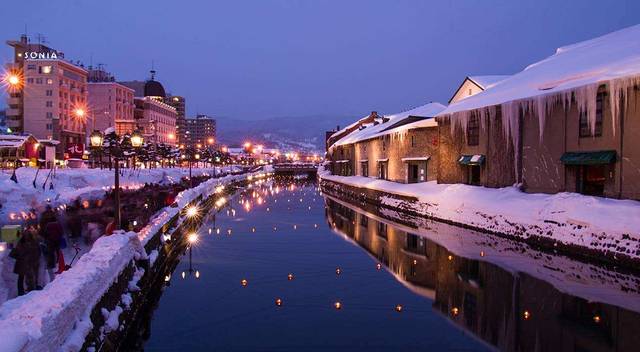 2月严冬,运河冻结。旧仓库群林立的小樽运河,夜晚由瓦斯灯营造出的浪漫气氛更是迷人。