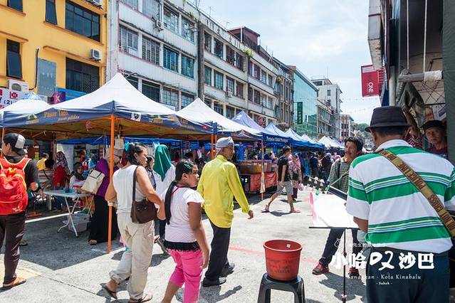 平日的加雅街只是一条清幽的马路,两旁食肆林立,基本上整条街都是华人店铺。到了周日早上就变成了水泄不通的市集,中午时分才会渐渐散去。从Jesselton Hotel的路口一直延伸到“通政人和 国泰民安”的牌坊。