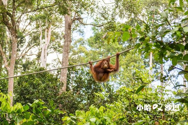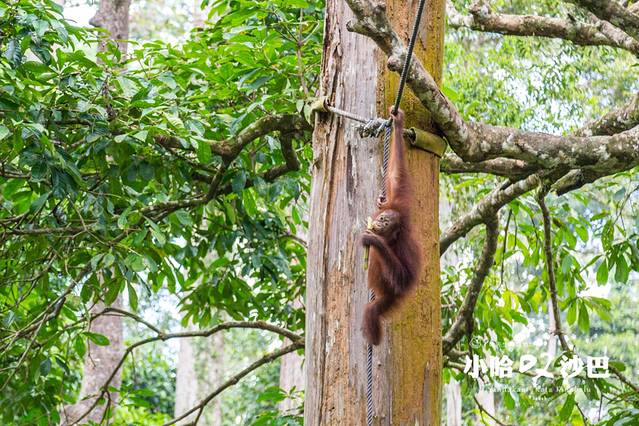 原来这些猴子是群体活动,而且每到点就会从这边爬到另一边去觅食。西必洛人猿中心、马来熊保育中西和RDC(热带雨林发现中心)虽说是三个独立运营的机构,但是这里的野生动物都可以随意的穿梭。所以,放归的红毛猩猩、马拉熊,也有可能在三个地方分别遇见哦!
