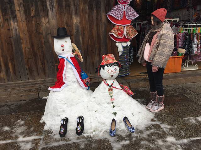 乌镇里面的人都会堆起各种各样的雪人⛄️
