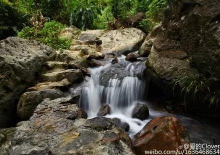 溪水前仆后继地涌向下层水面,阳光透过浓密的树叶将斑驳光影撒向水面,时间就在不知疲倦的溪流奔跑声中悄然流逝。