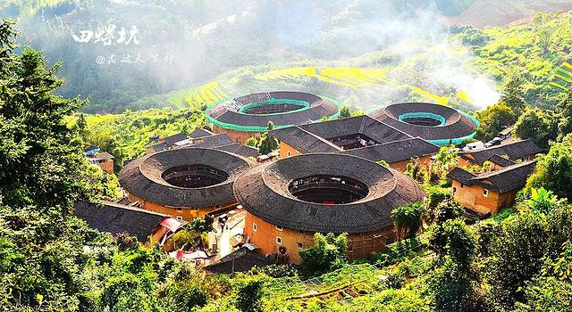 土楼奇特的构造使得他有“天上掉下来的飞碟,地上冒出来的蘑菇”等怪称,2008年7月,福建土楼被列为世界文化遗产。也难怪会吸引《爸爸去哪儿》《大鱼海棠》等剧组过来取景拍摄。