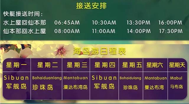 每天的行程都不同,所以要根据度假村的行程安排好你的时间哦