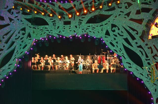 虽然长隆酒店有为住店的客人预留的座位区域,但由于有烟火表演,我们选择了靠后一下挨着巡游通道的座位,这样观看巡游效果更好。为了理想的座位我们提前两个小时就进场了,旁边的座位因为有人占的过多而人又未到还发生了争吵,这还是在全场并未满员的情况下,节假日的火爆可想而知。