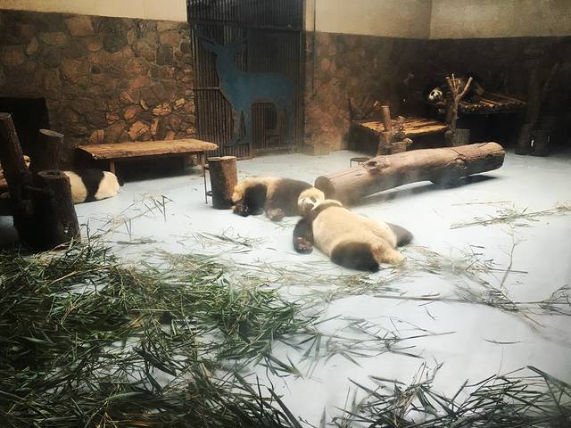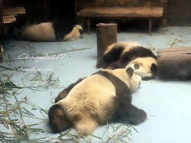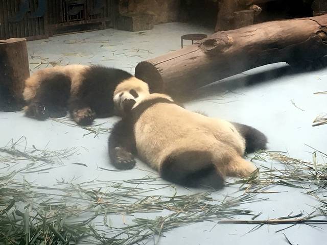 因为天气热,我们去的时间是一两点,大部分熊猫都在睡午觉!对,你没有看错!没有别的!没有活动的!都!在!睡!觉!