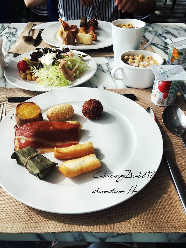 酒店的自助蛮不错,东西很多。中西餐基本覆盖了。因为考虑到一会出去还要继续吃,所以一人拿了一点~赶快吃完,赶时间去吃小吃~