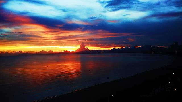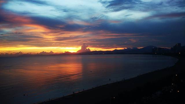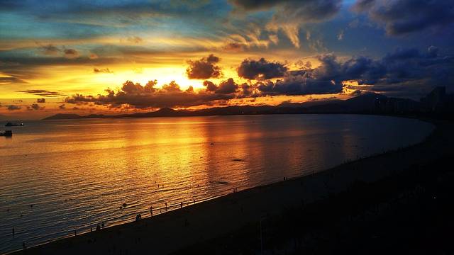 三亚湾黄昏的日落,为了明天的日出做准备的