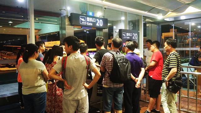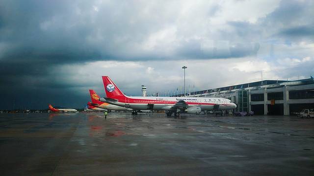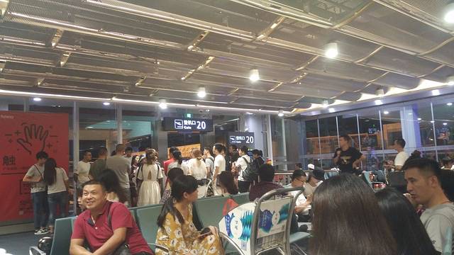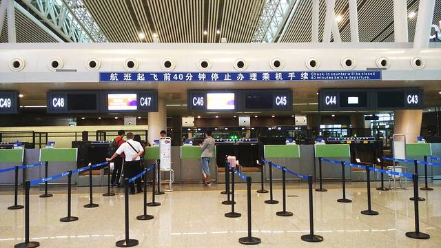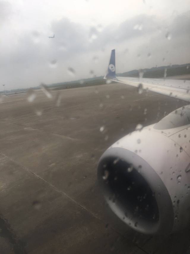 机场高速快的狠,半个小时就到机场了,看有人在自动取票机上办理选座值机,我也去看看看,结果我们买的这一班不可以,只能去柜台。昨天咨询了九元航空的客服,是可以直接和工作人员说帮忙选择一个靠窗的位置的,这样最好了,第一次坐飞机当然希望可以在床边看看天上的风景,工作人员帮我选了07F,取好票就可以去过安检了,还很早,而且听说过安检不能带水,于是在大厅里先坐坐,吃下早餐,把带的水全喝了,到安监处发现很多人在排队了,机场安检真的好严格,和火车站敷衍了事的安检完全不一样。外套脱掉,拿出口袋里所有的东西,背包里的充电宝也要拿出来放到他们的盒子里,(小米的16000毫安的也是没问题的),扫描全身,严实的摸一遍,顺利进入就是候机了。