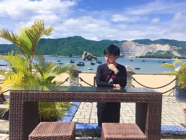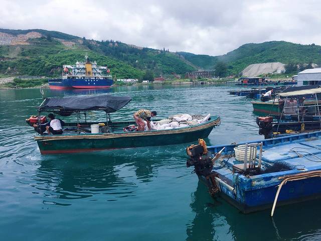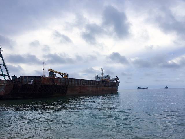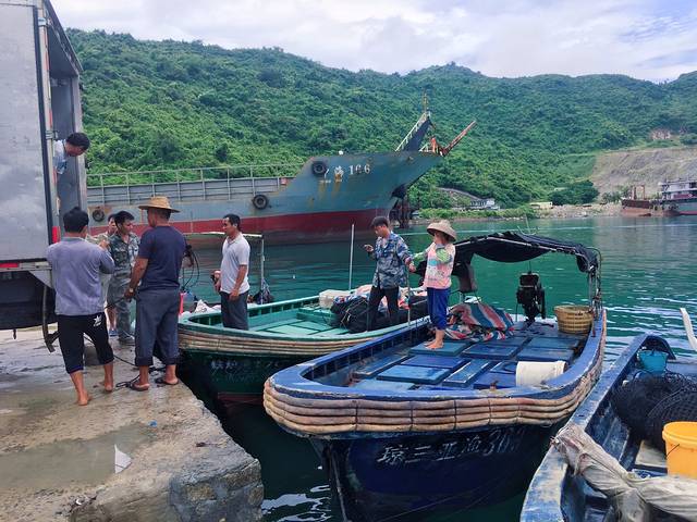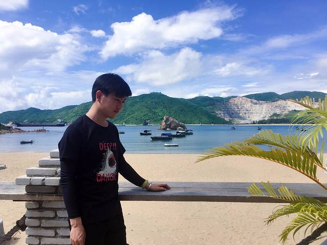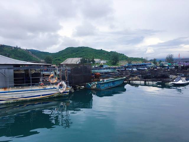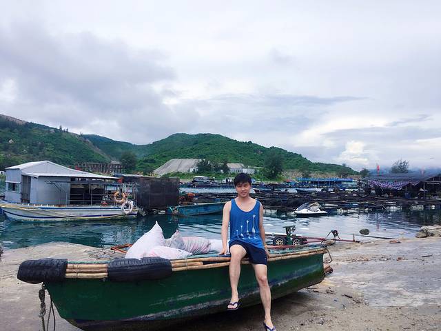 10点叫上毛毛和小伙伴再一起去皇后湾,前天晚上空调开太低,毛毛就感冒了,于是叫他出去走走,外面居然还有一丝丝凉快,什么鬼,这可是三亚啊。虽然有点凉快,我还是下水去玩了一会儿,我们一路沿着皇后湾的沙滩说去铁炉港,看着一艘巨轮出来,我想那就是铁炉港吧,一路走到皇后湾尽头,这里水更绿更清,立里面有渔民养的螺排,渔民在忙碌着装车海鲜,这里也很适合拍照,走回来一路,发现我们真的把这转了一个大圈,