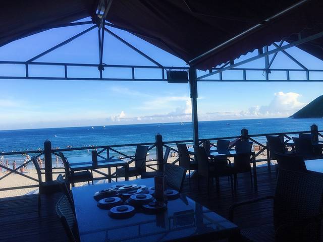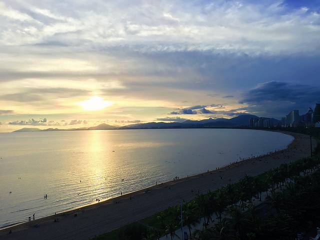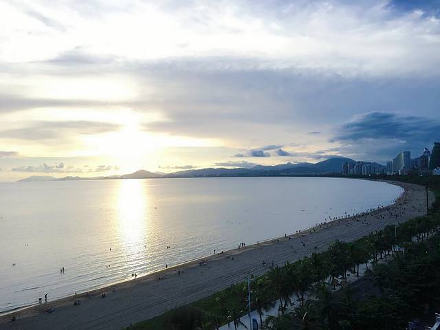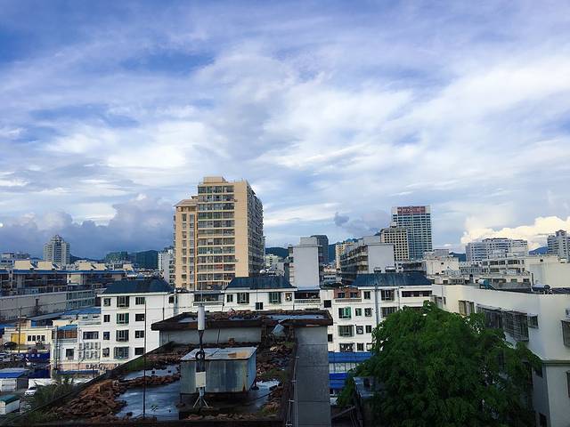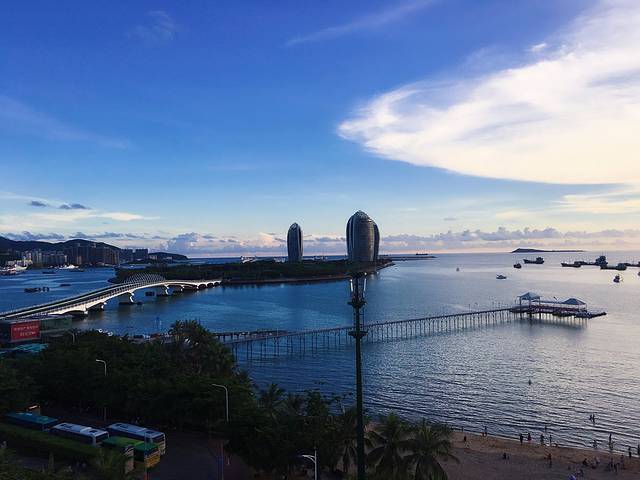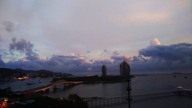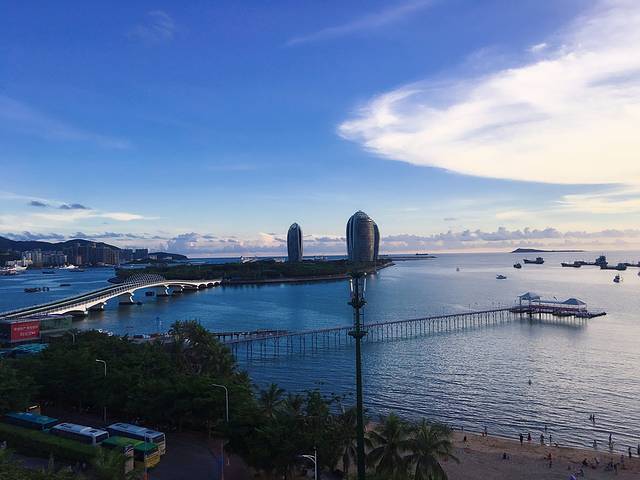 8楼的楼顶真的好适合看风景,三亚湾风光尽收眼底,还能看到40公里外的南海观音,在房间里待到6点雨停了才出门,
