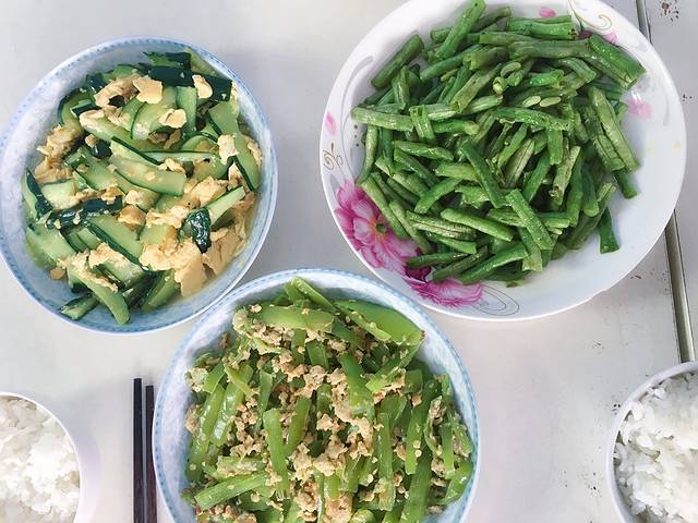 今天也想看日出,调了5点半的闹钟,结果小伙伴说比昨天额云还厚,估计看不到了,那就算了继续睡吧,8点起来去买菜,准备中午买菜做饭,黄瓜,辣椒,豆角,鸡蛋,本来想辣椒炒肉,结果就这个点菜市场就没有肉了,唉!
