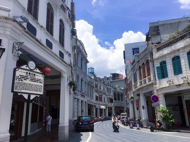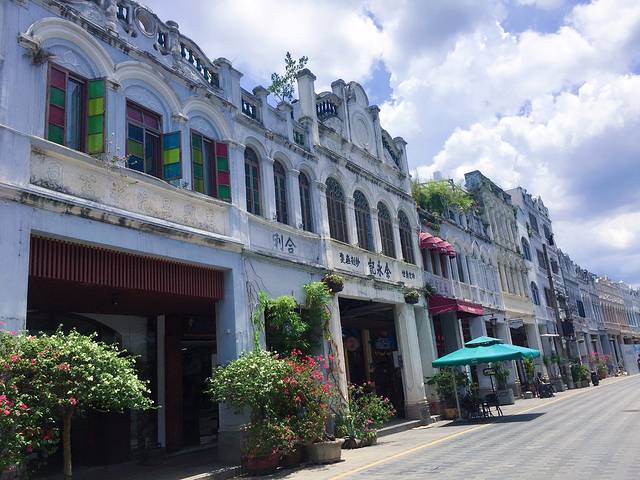 海口的骑楼建筑群初步形成于19世纪20-40年代,距今有100多年历史,其中最古老的建筑四牌楼建于南宋,至今有600多年历史。20个世纪30年代,海口已有35个行业572家商铺,如“梁安记”、“云旭记”、“远东公司”和“广德堂”等等。著名旅店或综合性娱乐场所有“五层楼”、“大亚旅店”、“泰昌隆”等等。许多大商号都在老街的骑楼里,展开不见硝烟的经营大战。尽管已过去了百馀年,走在老街上,仍能欣赏到街边建筑的美。骑楼沿街道两侧临街而建,下层部分做成柱廊式人行过道,用以避雨、遮阳、通行,楼层部分跨建在人行过道之上,每栋高二至四层,进深二三开间,在建筑美学上,楼的宽和高符合审美比例。骑楼的窗楣、柱子、墙面造型、腰线、阳台、栏杆、雕饰等体现了独特的风韵,墙体上的彩瓷花卉图案、女儿墙、骑楼、柱廊、敞廊是巴洛克风格,具有欧亚混合文化特征;人字形的屋顶复盖青瓦,上面安放着吉祥物。建筑结构上,有中国古代传统式、西方建筑模式,还有南洋的建筑及装饰风格,并明显受到印度和阿拉伯建筑的影响;骑楼下的长廊贯通成排,行人逛街时可躲避风雨烈日,一边悠闲散步,一边从容地看货购物。当古老的街道拂去历史的尘埃,当陈旧的骑楼剥落遥远的印记,留给了后人古老的质朴和清新的时尚,骑楼老街,海口的名片,文化的扉页。光阴荏苒,也许很多人都不会再去追忆这里曾经发生过什么,有过多少往事, 今日走在这里,依然可以让人感受到海口最早的城市记忆。