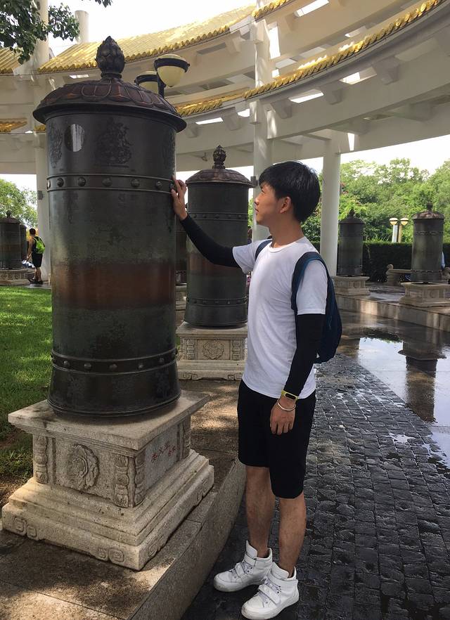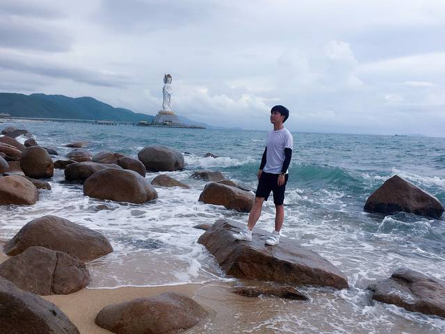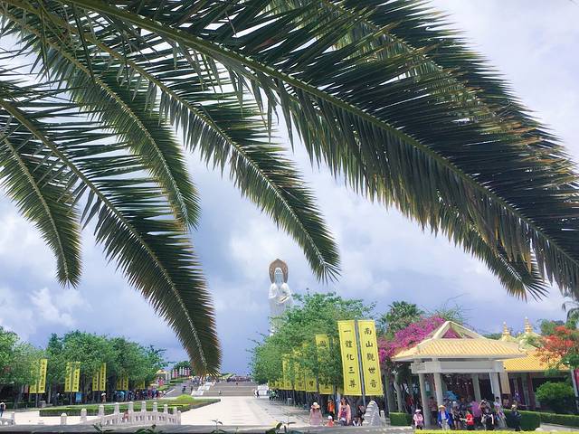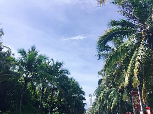 之后直达海上观音,坐落在海上的观音,视觉上给人很大冲击,佛门之地,总是给人一种很静心的感觉。南山海上观音建在海上,一条长长的走廊将她与岸上连接,观音高度达108米,比自由女神还要高15米,实乃世界造像之最。即便站在很远的地方,也能望见其巍峨壮观的身影。南山海上观音的造型为一体化三尊,从每尊的正面看均是一尊观音圣像,环绕一周方可看清三尊手势各异的观音圣像全貌。三尊观音手持法物各不相同,分别为念珠、经箧、莲花,象征“慈悲、智慧、和平”。圣像脚踏一百零八瓣莲花宝座,莲花宝座高十米,共四层,每层有形状相同的二十七瓣莲花,共一百零八瓣。