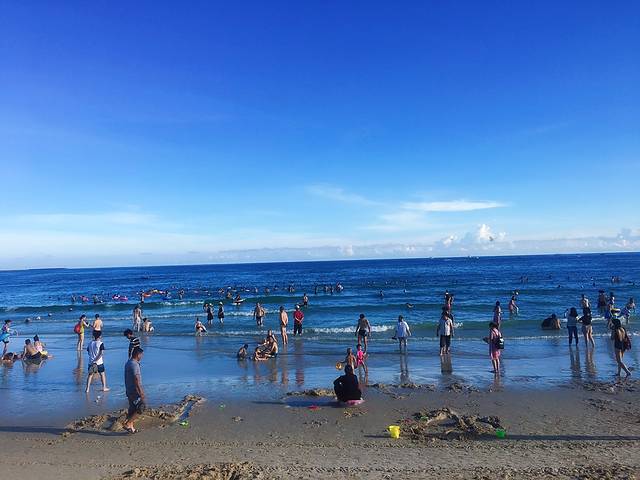 玩到4点多才走,坐公交到大东海广场,海滩边全是人,像下饺子一样,今天也游累了,就在大东海的海边走了,就坐公交回青旅了,