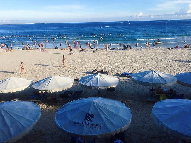起来已经8点多,窗外一片碧海蓝天,万里无云的大晴天!亚龙湾走起,从家附近的水利大厦坐15/25路到滨海乐园下车就好,发现公交站对面就是大超市于是又去逛了一圈,坐上公交已经10点了,一路上上来不少国际友人也是去亚龙湾的,下车11点了,真的是一天中最热最晒得时候 了,蓝蓝的大海,细软的沙滩,火辣辣的阳光,不过太阳再大也阻挡不了我的玩心,