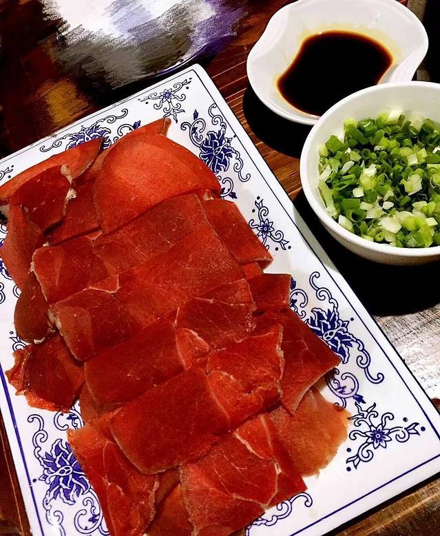 这个生吃牦牛肉是重头戏,我们本着视死如归的决心,又按耐不住想要当第一个吃螃蟹的人,点了这个生猛的特别推荐,不得不说,这口感真的让我现在写这个文的时候,口水都止不住的往外流了,肉质细腻,入口化渣,完全没有牛肉的腥味,吃着像三文鱼,但是没有三文鱼的油腻感,可能和牛肉极低的脂肪含量有关。一盘生吃牦牛肉,瞬间被最先还抗拒的我们一抢而空,好吃的更本停不下来。雪姐说,牦牛生长在高寒高海拔地区,整头牛也仅仅只有一个部位的肉可以用于特殊处理,做成生吃牦牛肉。