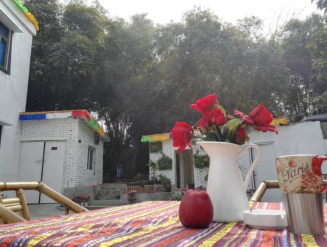 独特的藏羌建筑,仿佛一下到了藏羌别院,我们三傻小心谨慎的转院子一看,院子不大,还不时有一股股浓浓的牛肉汤味不住的往鼻孔里钻,整个院子总有一种到朋友家做客的小温馨感,后来院子主人出来,是一家四口,很热情的给我们介绍说是一家新开张的汤锅苑,最新奇的是她们做的是牦牛蹄汤锅,据说一个牛蹄要最大的砂锅才装得下,咋一听,混迹吃场的我们还真是没有吃过 。于是我们很是一致的决定要来尝个鲜。老板很热情的带我们参观这个别致的小院子,男女主人是一对恋人,女主人叫雪姐,从小在四合院长大,现在都是高楼大厦,独门独户,很怀恋小时候院子里跑,跳,爬树,种花,除草,逮蛐蛐的日子。机缘巧合去川西小环线的一次旅行途中住的一家羌族院落,很是热情的和她们讲了牦牛蹄的各种鲜为人知的好处,回来后小两口就一拍即合的动手找了这个既可以实现自己儿时梦想又能养家糊口的院子。