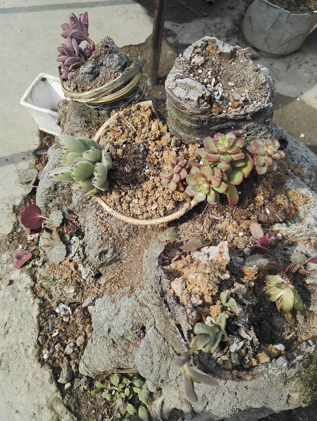 下午我们在院子里喝着茶,没有想到院子里几年前枯死的一个树桩也被雪姐再次利用,种上了多肉,在雪姐手中枯木逢春了呢