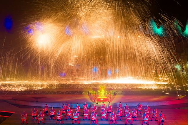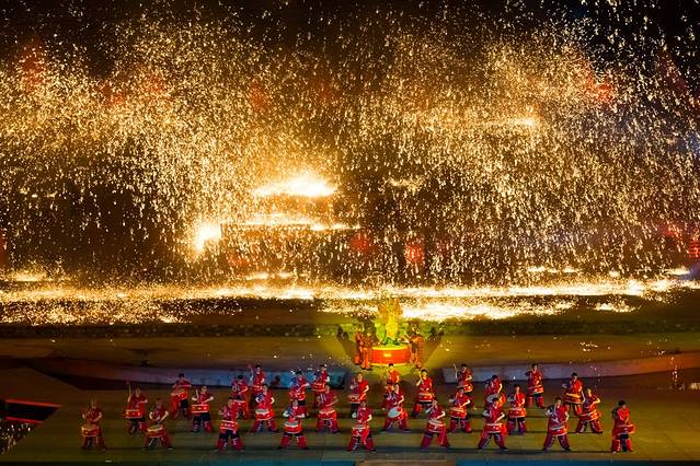 去司徒小镇就必须要看全国独一无二的“千年铁魂”实景大剧,千年铁花,源于煤铁之乡,看古代最原始烟花,千名匠夫挥臂,1600度铁水在夜空华美绽放,此起彼伏之间,气势恢宏震撼人心,60分钟的表演,里面融合了大量的山西民俗表演,一环扣一环,让人欲罢不能,满堂喝彩,极力推荐!