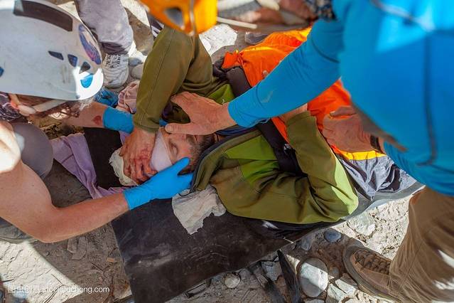 登山时容易摔伤,一旦“驴友”从高处摔下,不要随意搬动、拉拽伤者,现场急救应根据伤势进行止血包扎,固定骨折部位。