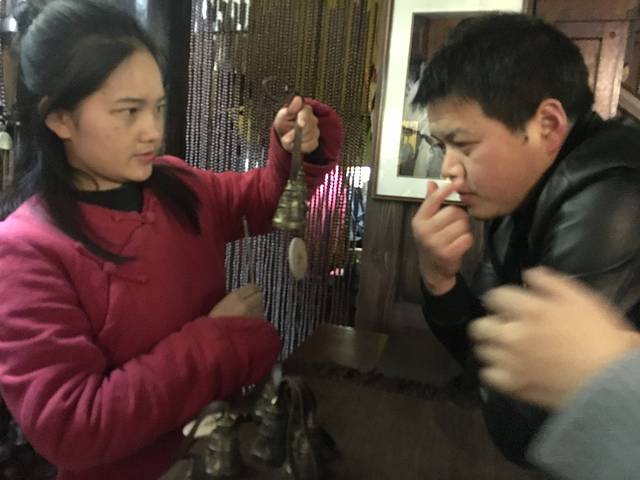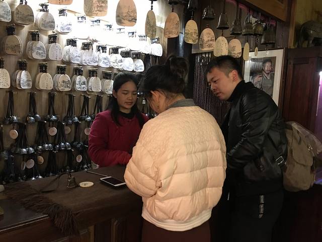 晚上回到古城我们在古城买了🔔,很出名的店子,就这一家,铃铛声音很清脆,每个铃铛都有不同的声音。