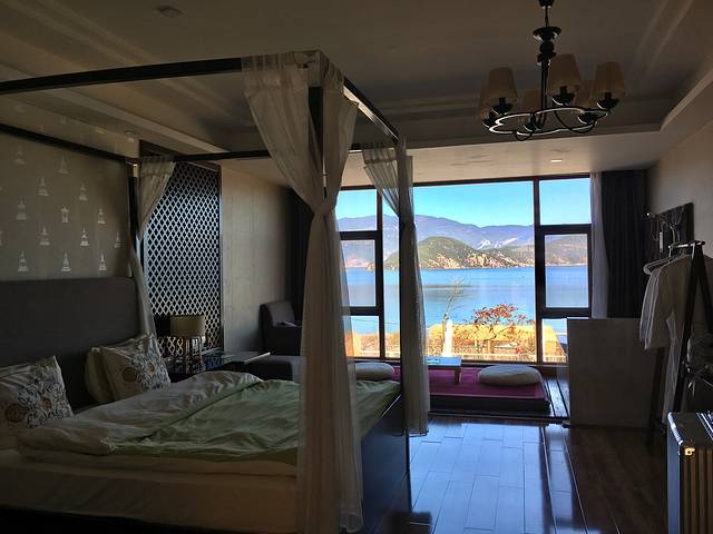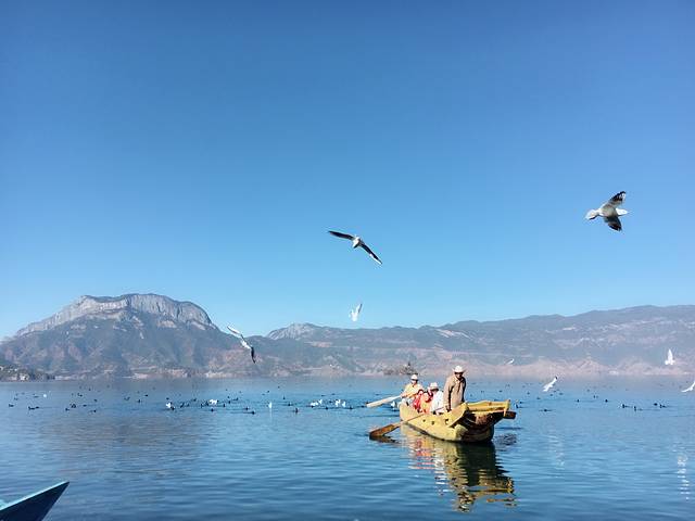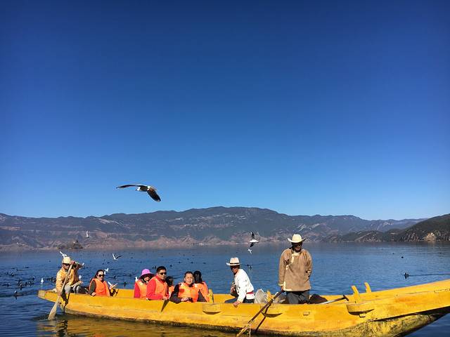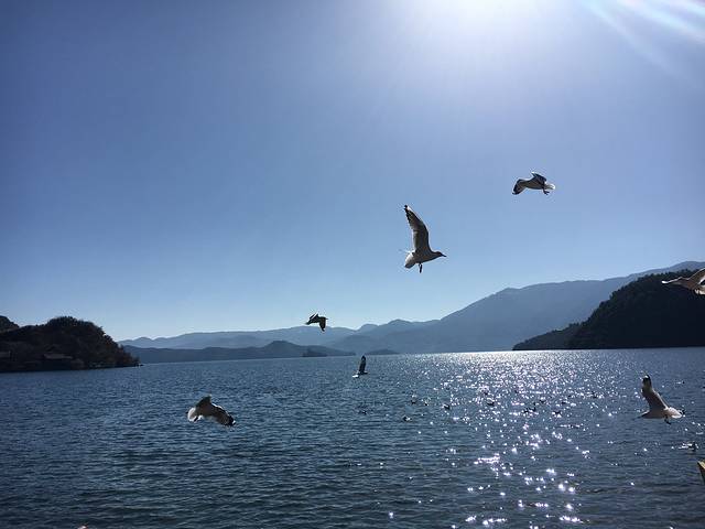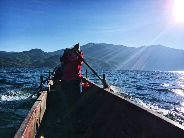 办好入住我们去了亲爱的客栈,最近很🔥啊,从码头坐船过去,几十分钟吧,那叫一个美啊,湖面很不错,在船上可以买🍞喂海鸥,因为泸沽湖保护的很好,所以水特别的美,所有图片都是原图,没有滤镜,没有美图。