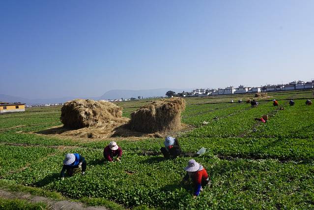 这些阿姨放着歌摘着菜,感觉特别舒服,想想在这样的阳光和天空下做什么都是一种享受吧。