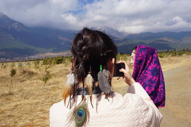 我们其实就在玉龙雪山下的路边远远看了一下雪山,不高也不大,对于从大山里去的我们雪山并没有多大吸引力,性价比也不高,如果雾大什么也看不到,如果要去雪山建议早上七八点就出发,不然什么也看不到,雪山下的那条路真的很美