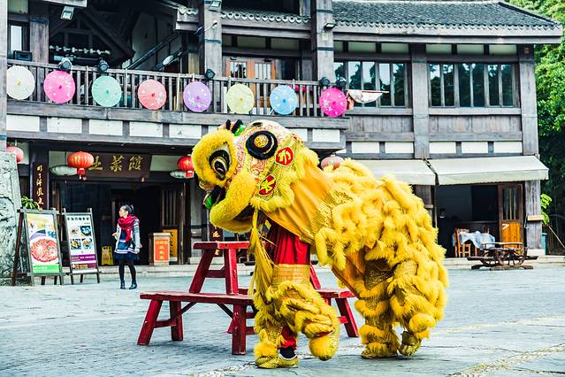 而这次在东部华侨城文旅度假小镇的茶翁古镇,我仿佛看到了自己小时候的回忆:矫健的少年,舞动的金狮,精彩纷呈的动作和娴熟的技艺。