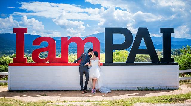 Pai县城总有一些奇思妙想的东西,这其实只是一个resort门口的装饰,右边就是客房,也并不是像大家想象中的那么大,所以并没有什么游客在这里停留,也可能只是我每次去的时间都不对。给表SAO拍了几张后来了一对广州同胞,简单的交谈了一下,告诉他们我的想法,他们表示很支持并祝福我们。
