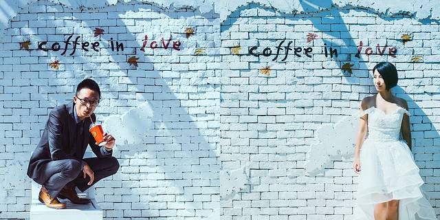 拍到这里我整件衬衣已经汗透了。之前总是跟客人说,拍婚纱照就是这样的,要好看就得付出。这是第一次了解到在35℃的烈日下,穿着4件套爬山是什么样的体验,在亭子休息了一会,下山继续去下一个取景地coffee in love。