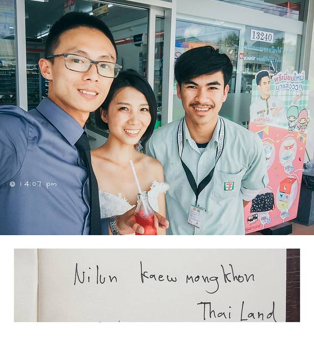 711便利店在泰国真实神一般的存在,整个泰国共有7429个分店,位居世界第二。我挑选了一家人比较少的店,买了2瓶颜色鲜艳的汽水作为拍摄道具(现在想想应该买红牛的),本来是打算在冰柜前面拍的,结果收银员说有监控,店长也在看着,不允许。所以只能请他帮忙站在店门口拍了,等前面的客人结完帐,小哥跟店长打了个招呼出来,教他怎么按快门和对焦,他拍完后耐心的问我行不行,是否需要重拍。我其实很想让他再站远一点,能把711门头拍下来,可店里有客人等着结账就没好意思。711一直不支持信用卡消费,每次都会找回一打把硬币,但去年开始711、全家这些品牌便利店开始支持支付宝,方便了不少,还有满减优惠!