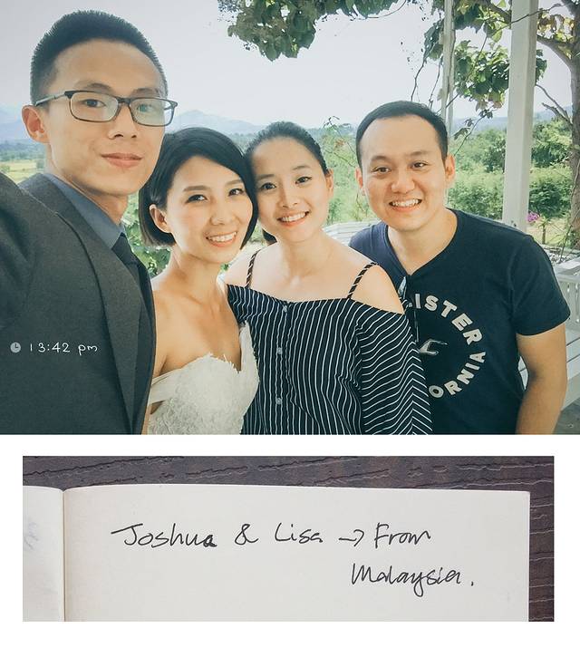 在房间的露台,简单的安排好表嫂占位调好相机,请酒店大唐经理Addy拍摄入住的前几天一直都是穿着泰服屌丝打扮,突然看到我穿西装出现,他整个人都惊呆了然后说我帅哈哈哈哈,Addy很耐心拍完之后让我检查问是否需要重拍,我确认他拍摄OK之后他不停的恭喜我们。