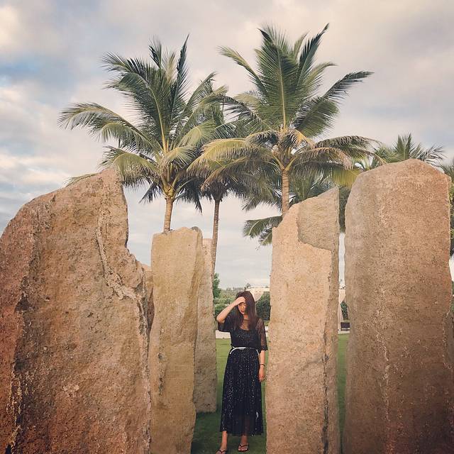 他们家标志性的石头,旁边是海....在落日的余晖下,周先生👨🎓帮我拍下.