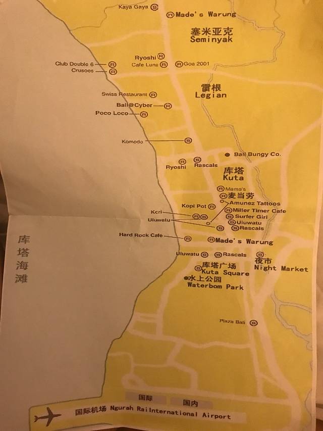 买的电话卡送了这个看不懂的地图,巴厘岛不大,所以不用纠结任何问题,机场离水明漾和库塔很近,20分钟车程,蓝梦岛从库塔出发也就是30分钟到码头,乌布比较远.