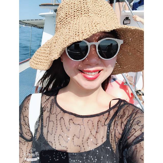 坐的双体帆船,甲板上天气好到爆~到蓝梦岛整个时间需要1.5个小时.一路上会有人伴奏....