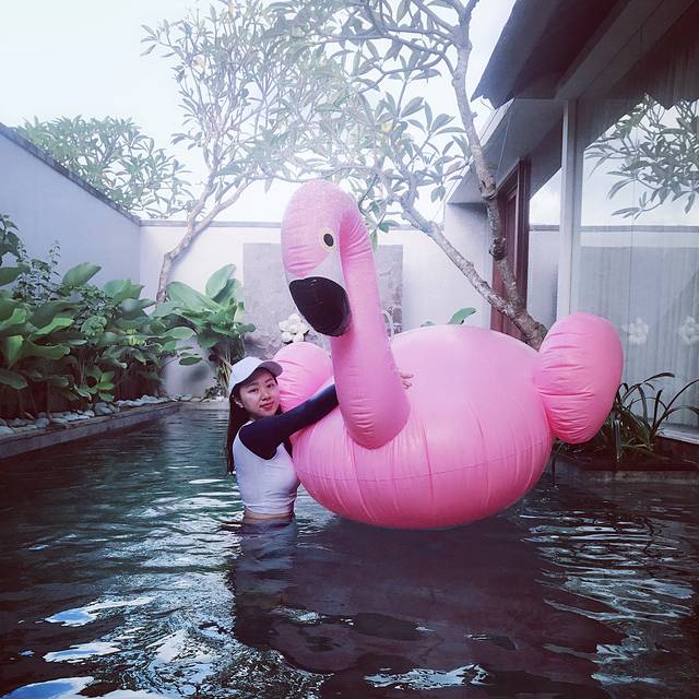 我们到了酒店迅速换了泳衣,就去问前台要了火烈鸟,不会这个火烈鸟坐不了人😄
