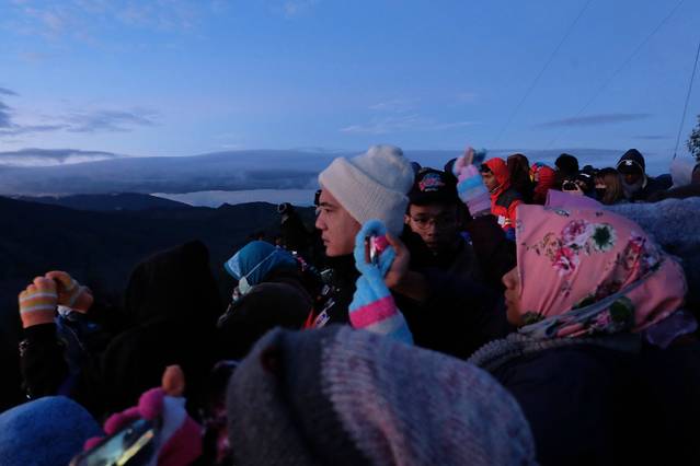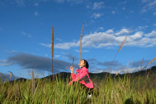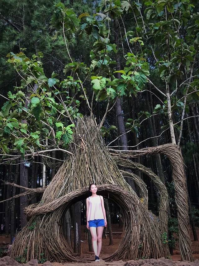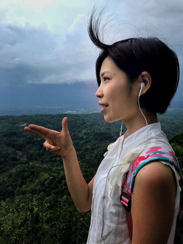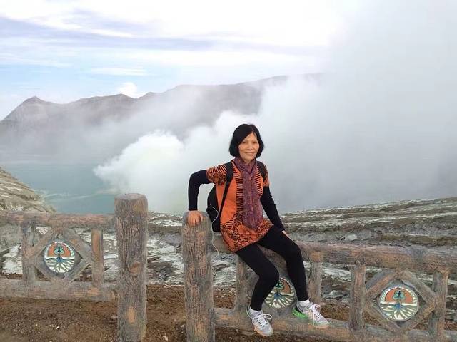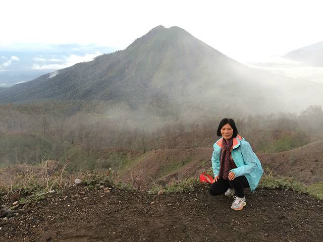 宜珍火山上的星空超级美,不能描述。登山之旅开始了,向导(100人民币)带领我们开始狂奔。狂奔的路上,有五六个人力拉车司机会伴着随行,大概看出我不行的原因。哈,现实的确我不行,仅仅只走了3公里,就嚷嚷着要回去。太累了,想吐,坡度很斜。我对向导说“I am a loser”。回忆想想登山前对向导说的“No problem.I'm strong”。现在真是打脸。最后,只有娘亲登山成功,6个多小时,美景尽收她眼底。这是向导给娘亲照的:
