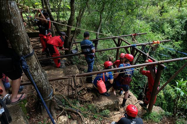 购票后,工作人员会给你一个手环,手环上会有数字编号。可能是人力升降的问题,所玩的项目是挺贵的1600000印尼盾(即700多人民币)三个人,他们的工作还蛮辛苦的。