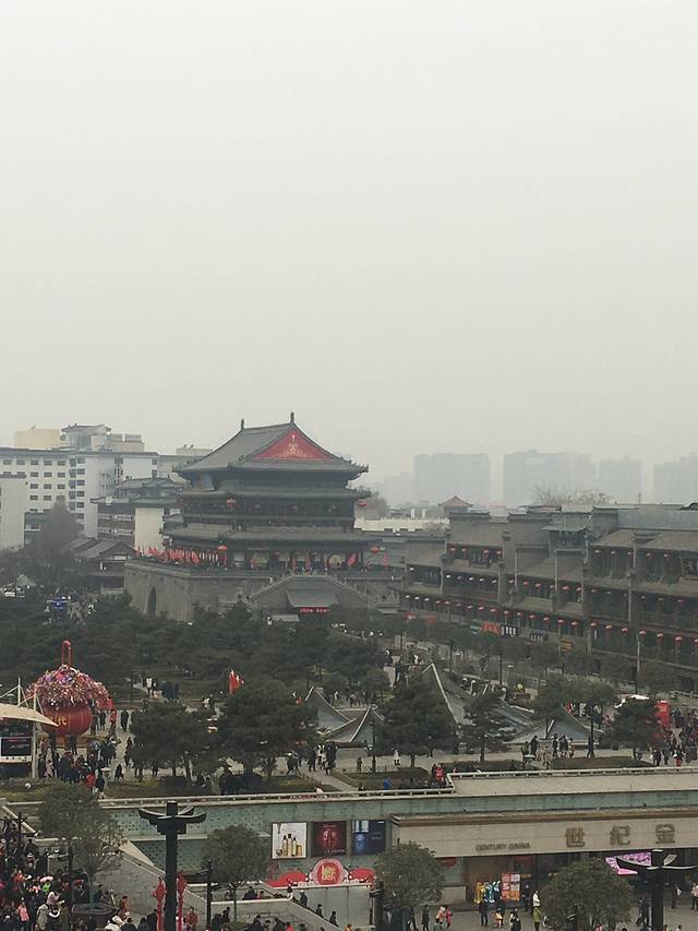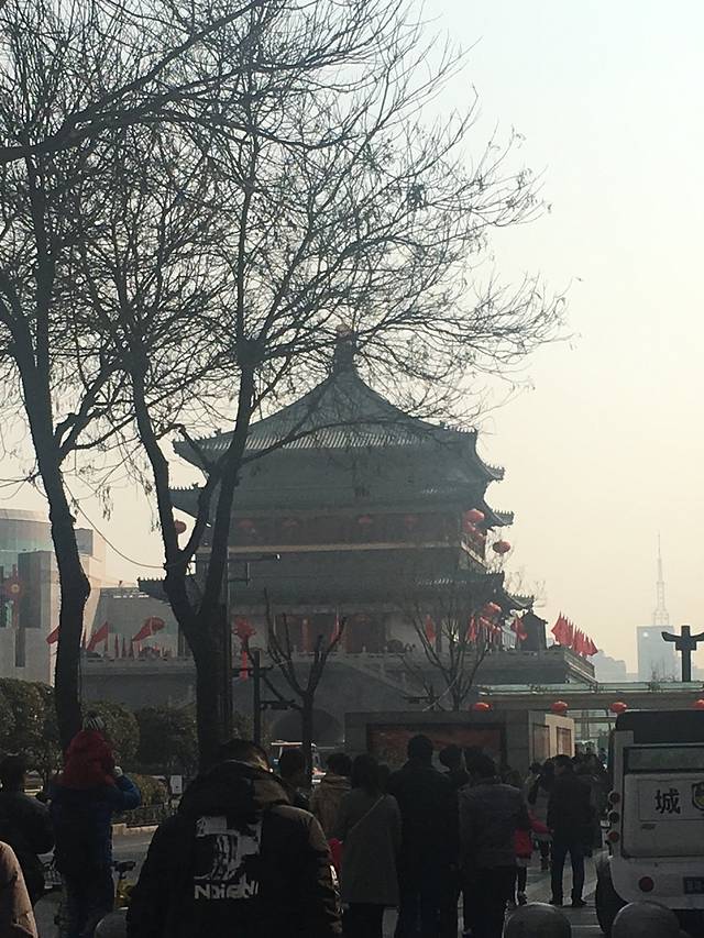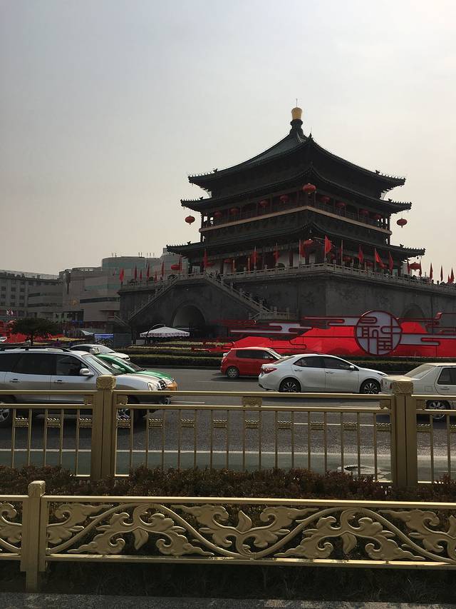 从机场出来直奔机场大巴,25元一位,机场大巴售票处旁边有机场商务车,50元一位,直送钟楼,对于这个陌生的城市,果断选择这个,别克商务车,跟司机师傅还能边走边聊。远远看到古建筑即钟楼,钟楼地铁,公交都很方便。