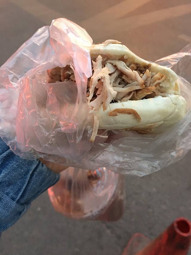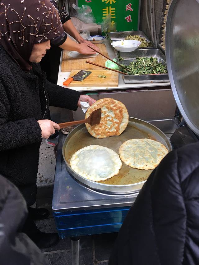 逛街就是逛热闹,看有排长队的,就挤过去看看。北方的韭菜盒子,这里叫"回味韭饼"。