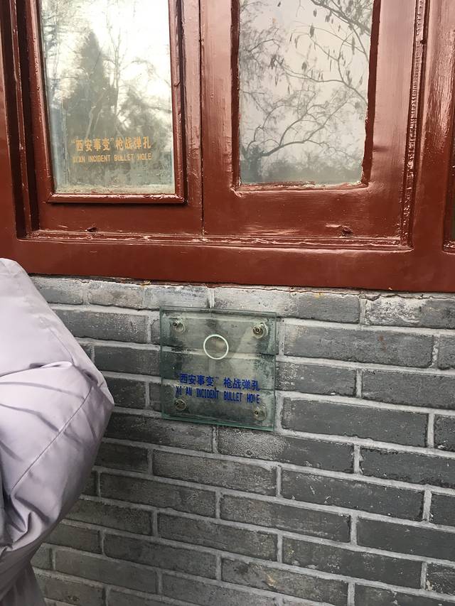 "西安事变"事发现场,枪林弹雨中蒋顺后窗逃上山,子弹孔如今也被保护起来了。