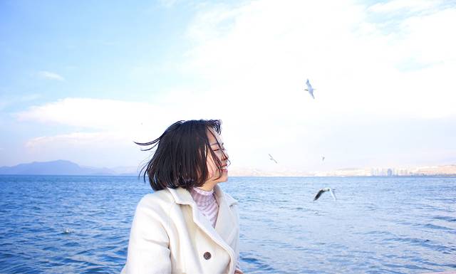 往前走了两百米左右就有一个湖心亭专门喂海鸥,有卖小鱼干和面包的,这里的海鸥都胆大的直接从手上咬住,还是很开心呢