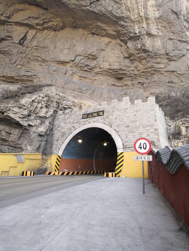 已经到达了横山隧道我们已经距离恒山不远了加油!不过在经过这=隧道的时候还真的有点受不了,路上打车来车往的耳朵确实有点经受不住,就没有拍照了。两手只能捂住耳朵,在这里也跟大家说一下如果声音分贝较高的话大家可以尝试捂住耳朵张开嘴巴哦!算一个小常识吧。